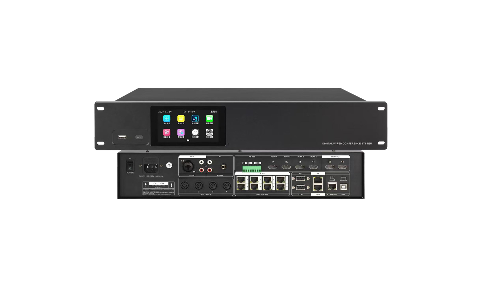 - 8 × RJ45 microphone ports with closed-loop network connection